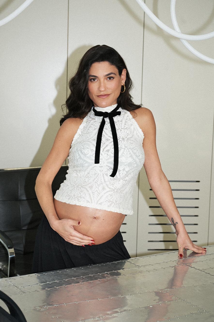 חולצה להריון ללא שרוול מבד תחרה, עם צווארון גולף קצר, בגזרת A קלאסית ומחמיאה וסרט קטיפה לטאץ' אלגנטי. אנחנו ממליצות לשלב עם מכנסים שחורים מחויטים ללוק מושלם לאירועים או דייט לילי. שימי 🖤: פריט זה נמכר במכירה מוקדמת וצפי הגעתו בין התאריכים 26/02/2026 עד 10/03/2026