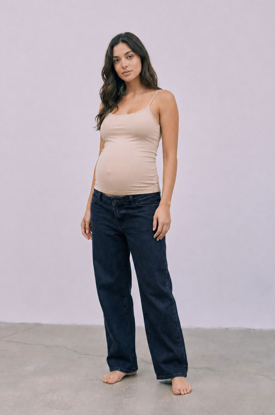 ג'ינס הריון בגזרה מתרחבת, 100% כותנה, מותן נמוכה עם כפתור קדמי ורוכסן, באורך מלא ו- 4 כיסים. מגיע עם פטנט כפתורים וגומי להתאמת היקף המותן לנוחות מרבית עבורך. ג'ינס קלאסי שמתאים לכל מלתחה וישמש אותך גם לאחר ההריון.