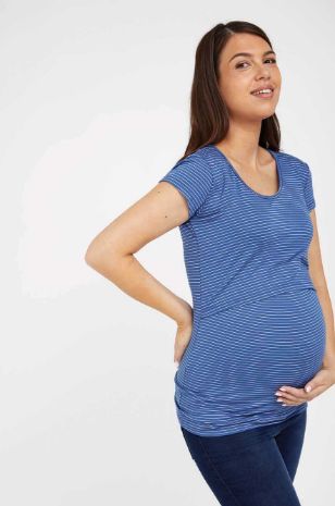 חולצת מעטפת להריון מבד קליל ונעים, שרוול קצר וצווארון עגול.