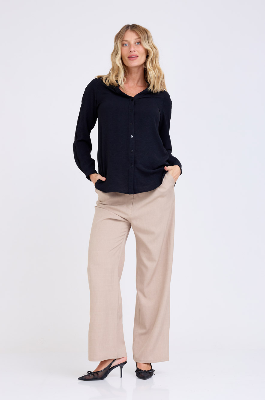 מכנסי הריון קלאסיים ומחויטים בגזרה ישרה עם כיסי צד, גומי מאחור לנוחות מקסימלית לגוף המשתנה וסגירת רוכסן וכפתור קדמי. הגזרה המחויטת מעניקה מראה אלגנטי. פריט אידיאלי לעבודה, אירועים או לוק יומיומי מוקפד בהריון.
