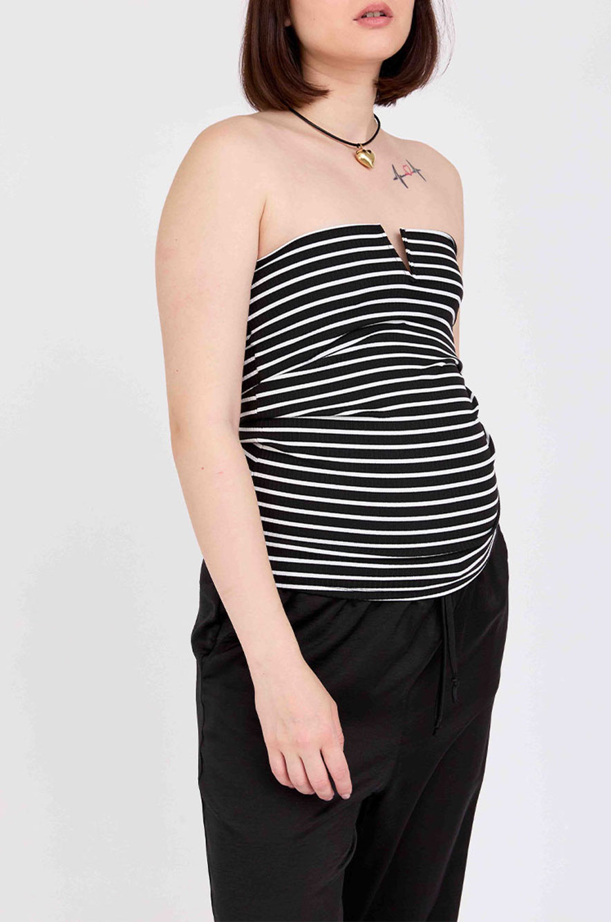 סטרפלס הריון V שחור פס לבן