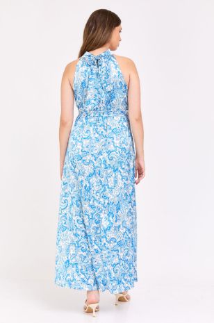 שמלת ערב מקסי אלגנטית להריון מבד דמוי סאטן מבריק, בעלת צווארון קולר נקשר בשילוב חגורה להדגשה וחיטוב המותן. גזרה מדויקת ומחמיאה מעניקה לשמלה זו טאץ' אלגנטי ומרשים אשר הופכת אותה לשמלת ערב מושלמת.
