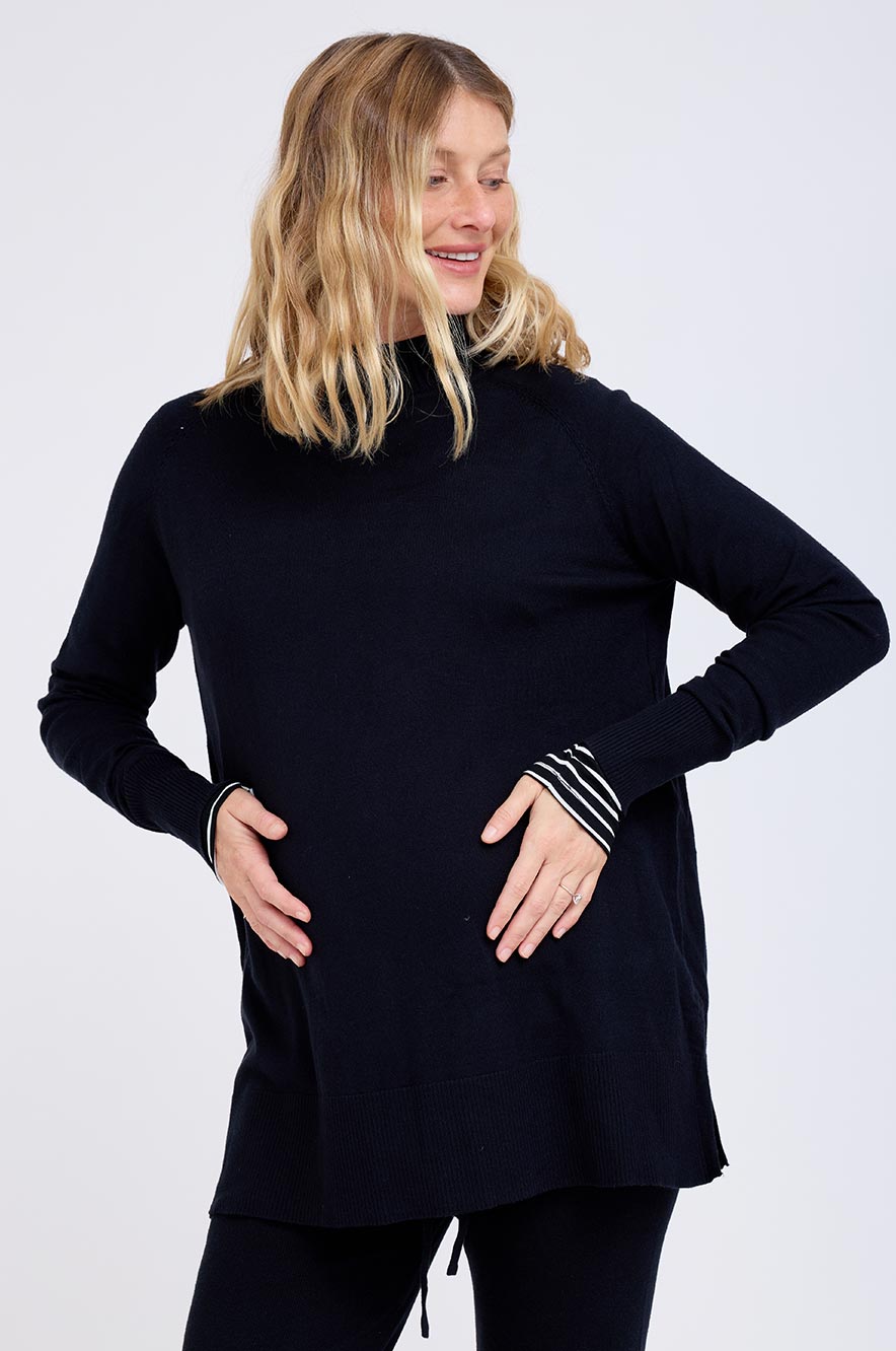 סריג הריון גולף מבד רך ונעים, בגזרת אוברסייז עם שרוולים ארוכים בסיומת ריב, צווארון גולף נמוך ושני שסעים בצידי הסריג. פריט שיתאים לכל תקופת ההריון, מושלם לעונת המעבר ולימים הקרירים. שלבי עם מכנסי סריג תואמים ללוק COZY מלא בסטייל!